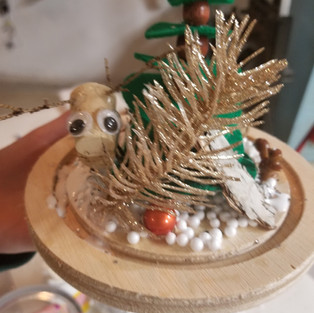 Step 2: here are the decorations (beads, bark, acorns,..)